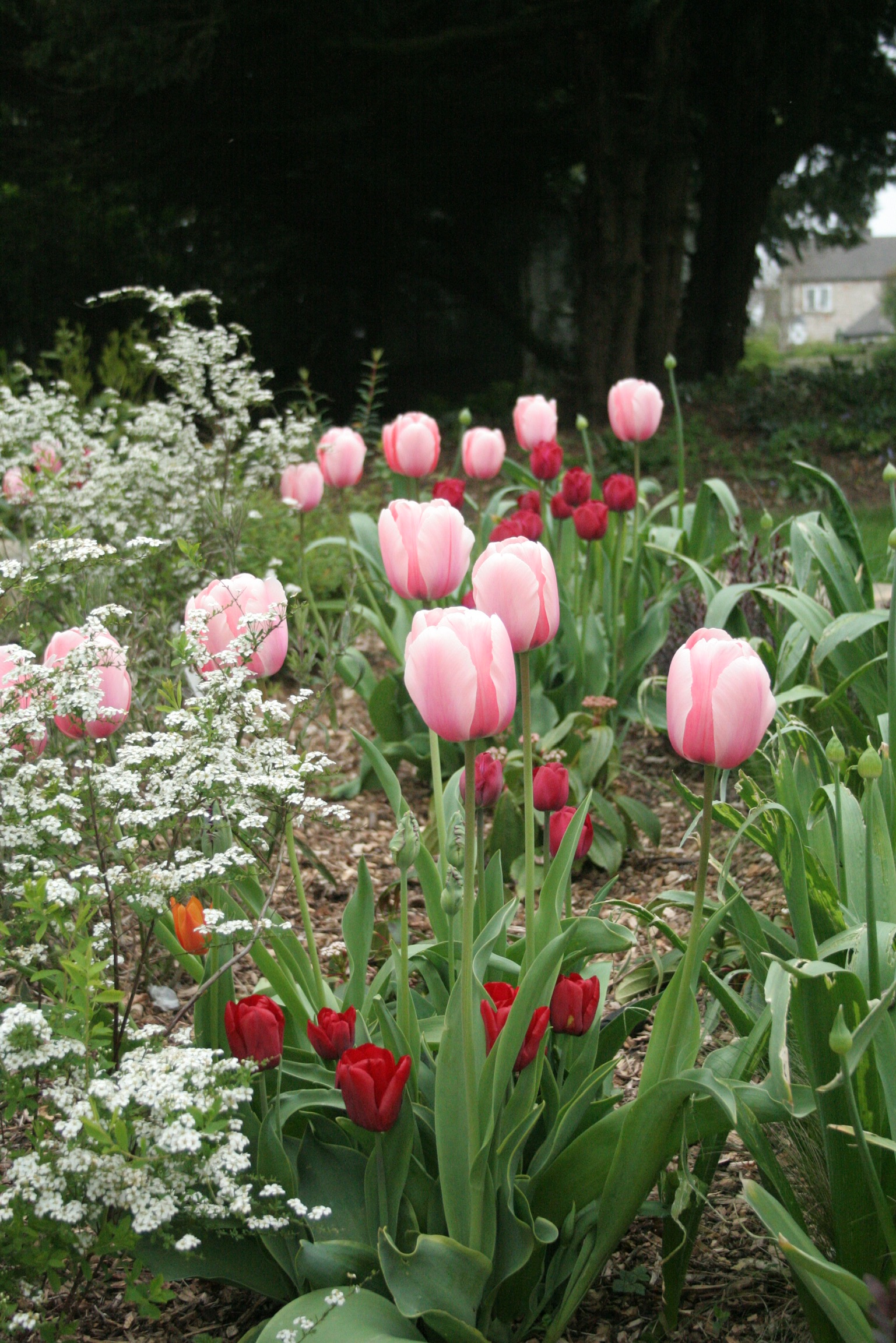 - For maximum colour options – tulips are the ‘go to’, however not all tulips will reliably come back each year so I tend to group them in small beds or containers which can be positioned and retrieved. Tulips like sun and warmth. I often mix 2 colours together and repeat the clumps around the garden. Tip; Later tulips are less likely to get weather beaten if you’re choosing for an exposed site.